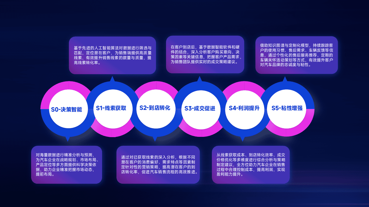 通过拓宽潜在客户来源、、、优化线索分配并提高到店转化率,,,,以增强销售效率。。同时,,利用线索数据不断优化分析模型,,,,有效提升转化率,,扩大营销影响力。。。。